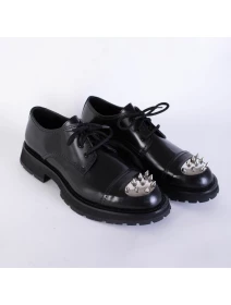 Indulge in the epitome of high fashion with these stunning black brushed leather derby shoes from Alexander McQueen, enhanced with bold, pointed metal studs for a unique edge. Showcasing superior craftsmanship from Italy, these shoes are not just footwear but a statement of style. With their slightly flared sole and meticulous tone-on-tone stitching, they promise to elevate any look with an air of sophistication and daring charm exclusive to Alexander McQueen. Color: Black Material: Leather Country of origin: IT Made in Italy Very exclusive and high craftsmanship
