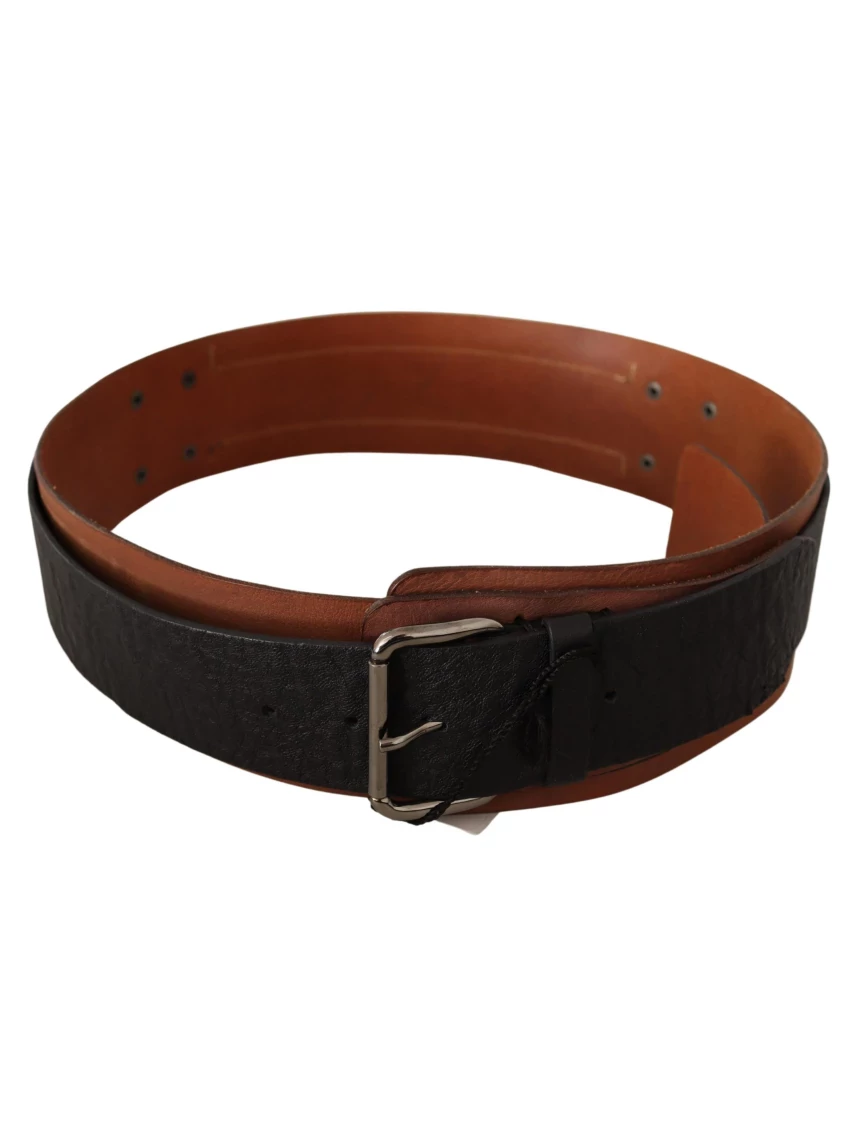 Indulge in the epitome of Italian craftsmanship with this exquisite Costume National fashion belt. This brand new, tag-attached accessory is not just a means to cinch your waist but a statement piece that adds a touch of elegance to any outfit. Made of premium quality leather, the belt presents a chic dual-tone color scheme with a shimmering silver-tone buckle to fasten it with grace. Whether it’s a day at the office or an evening out, this belt serves as the perfect finishing touch to your ensemble, reflecting Costume National’s commitment to luxury and style. Material: Leather Color: Brown Motive: Solid pattern Country of origin: Italy Logo details