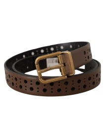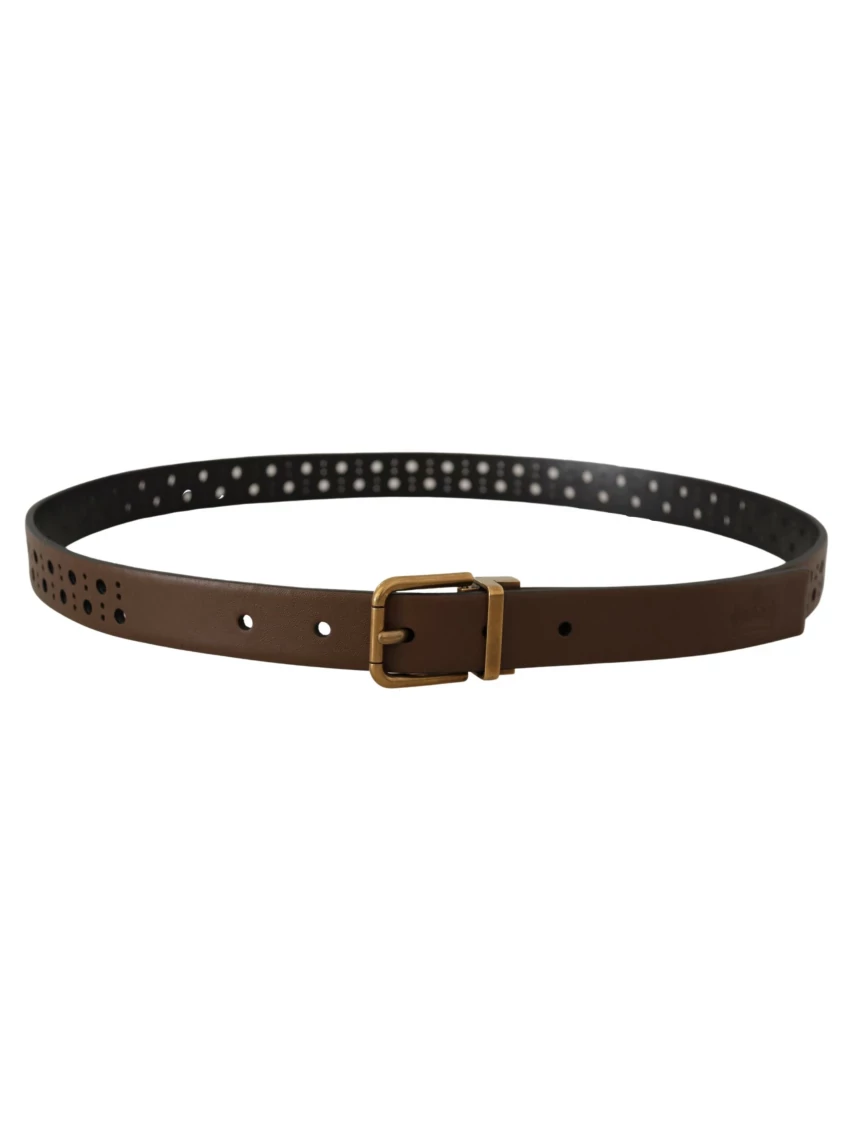 Elegant Brown Leather Belt with Golden Buckle