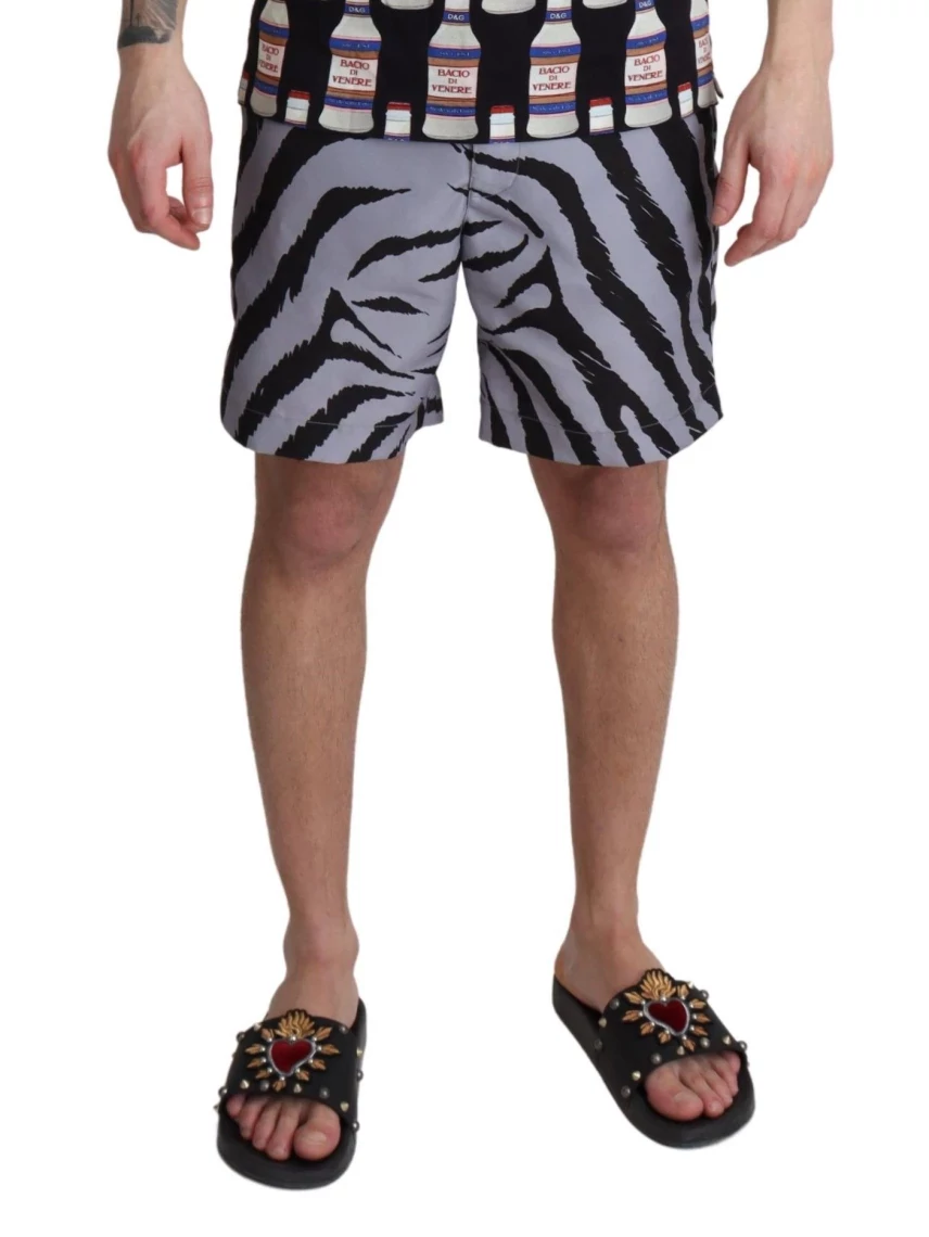 Make a splash with these Dolce & Gabbana exclusive Beachwear swim trunks, designed for the modern man with a taste for luxury and comfort. These stunning trunks boast a chic zebra print, perfect for standing out on sunny beach days or lounging poolside. With a secure elastic waist, convenient pocket configuration, and premium material, you’ll embody both style and practicality. Color: Gray Material: 100% Polyester Country of origin: IT Elastic waist for a comfortable fit Two front pockets and one zippered back pocket for essentials Detailed with the iconic logo for a touch of class