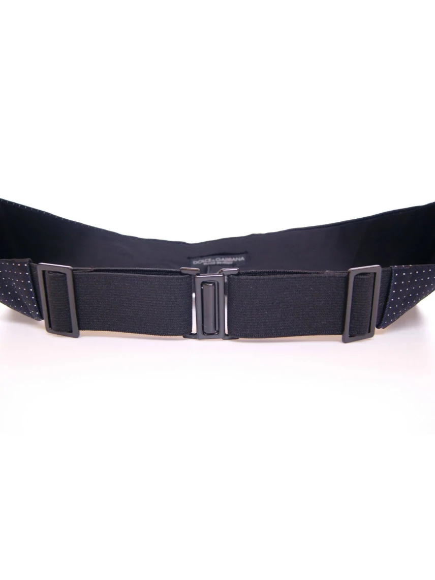 Indulge in the epitome of luxury with our exquisite 100% authentic Dolce & Gabbana Silk Cummerbund, a brand new piece complete with tags to enhance your formal wear. Adorned with a tasteful blue and white polka dot design, this cummerbund from the prestigious MainLine BlackLabel Collection adds a touch of sophistication to any ensemble. The adjustable hook clip closure ensures a perfect fit, while the stretch band provides comfort without sacrificing style. Handcrafted in Italy with keen attention to detail, make a statement with this dashing accessory. Material: 100% Silk Color: Blue Country of origin: IT Width: 13cm Logo details Stretch band with adjustable hook clip closure