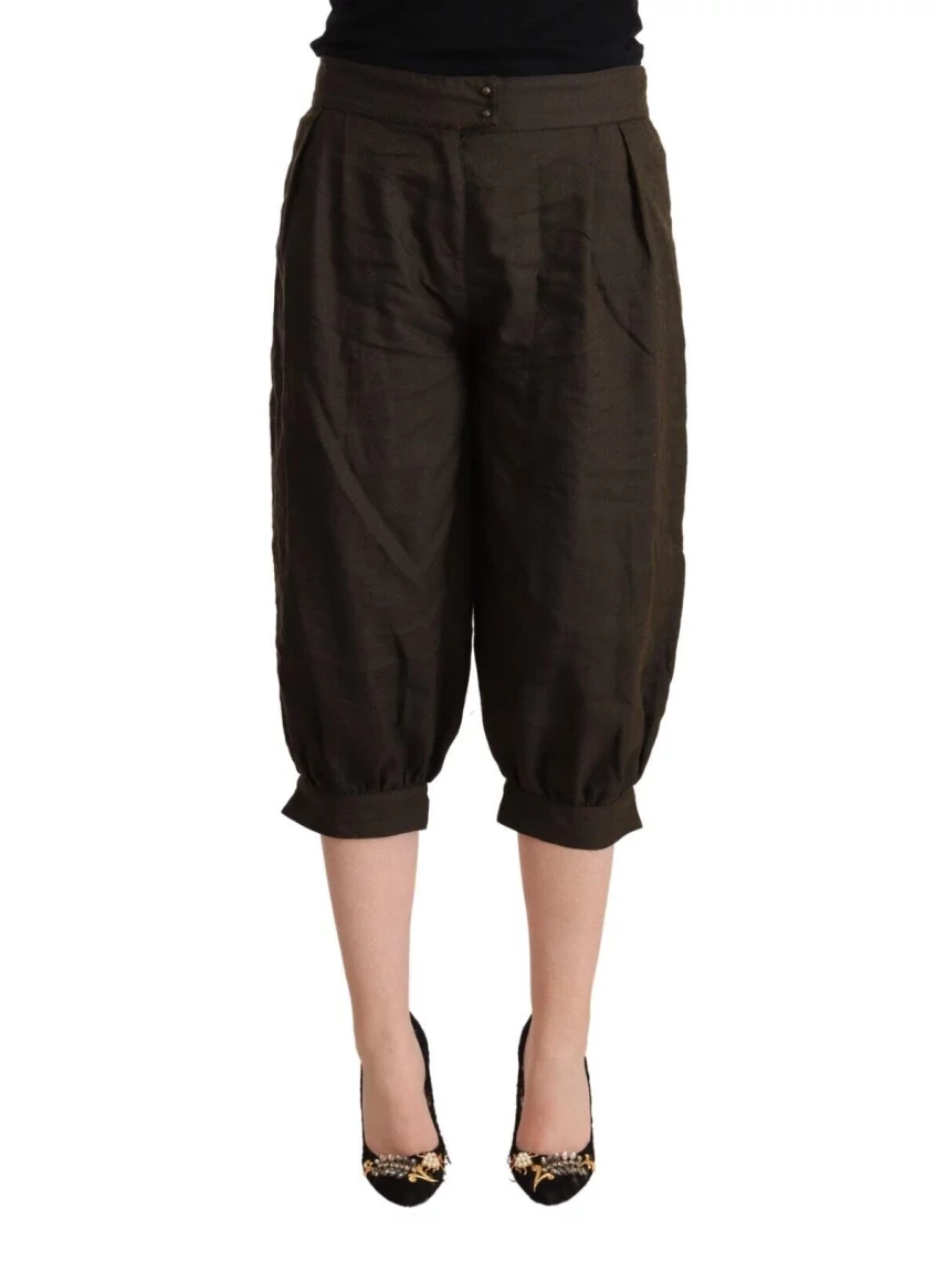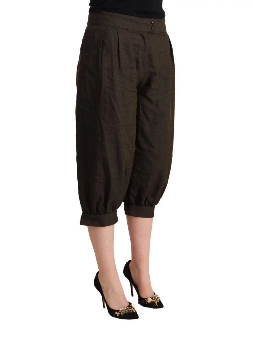 Elevate your wardrobe with these stunning mid-waist cropped harem pants by GF Ferre. These pants blend elegant Italian craftsmanship with contemporary style, perfect for those who appreciate high fashion with a touch of uniqueness. Featuring a comfortable yet flattering design, the pants come with a convenient zipper and button closure. Embellished with the subtle yet distinctive GF Ferre logo detailing, these pants are a testament to the brand’s attention to detail and quality. Color: Brown Material: 48% Viscose, 35% Polyester, 12% Virgin Wool, 5% Metal Country of origin: Italy