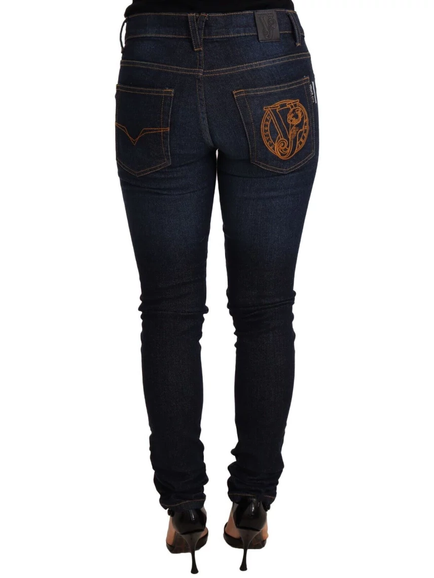 Dai un tocco di stile al tuo look denim con questi splendidi jeans skinny VERSACE JEANS COUTURE, perfetti per aggiungere un tocco di lusso al tuo abbigliamento quotidiano. Realizzati in pregiato cotone, questi jeans offrono una vestibilità a vita bassa e sono impreziositi da eleganti dettagli con logo per un inconfondibile tocco di stile. Dotati di un'elegante chiusura con cerniera e di versatili tasche multiple, sono tanto pratici quanto eleganti. Indossa l'esemplare finitura blu scuro per un look raffinato e disinvolto. Colore: Blu Materiale: Cotone Modello: Jeans skinny in denim a vita bassa Chiusura con cerniera Dettagli con logo Paese di origine: SE