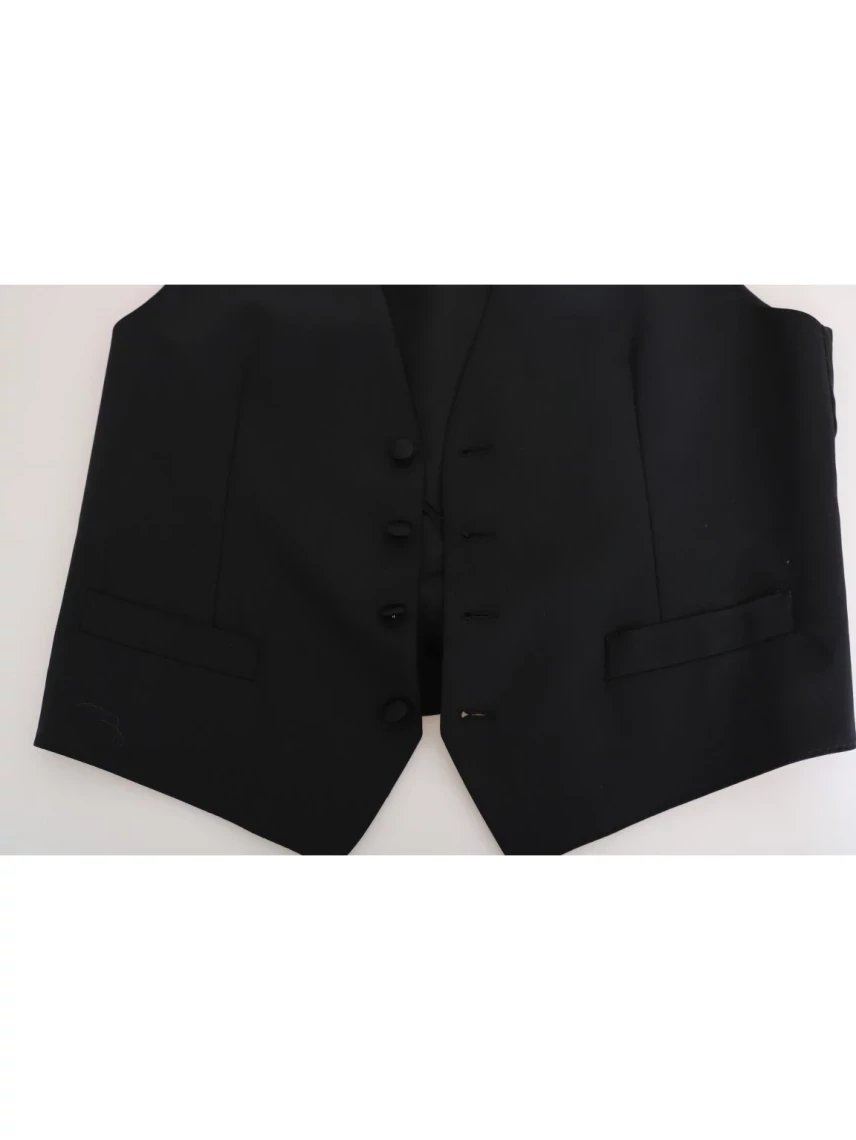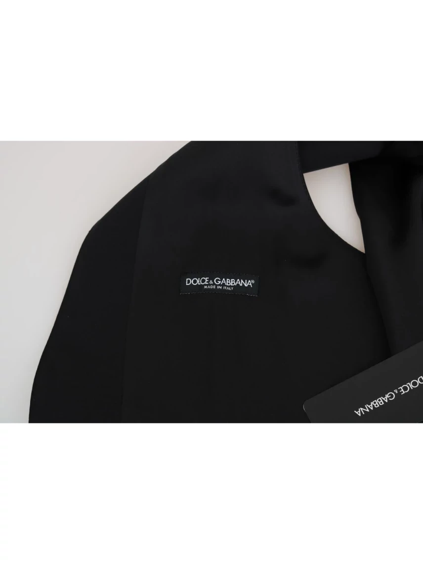 Arricchisci il tuo guardaroba sofisticato con questo raffinato gilet nero firmato Dolce & Gabbana. Perfetto per gli eventi formali, questo capo dalla vestibilità slim è un'affermazione di eleganza e stile. Realizzato in un lussuoso mix di lana, poliestere e seta, è progettato per offrire una silhouette elegante e una vestibilità comoda. Completo di chiusura con bottoni e discreti dettagli con logo, questo gilet è realizzato in Italia, garantendo la migliore qualità e artigianalità. Materiale: 51% lana, 30% poliestere, 19% seta Colore: nero Paese di origine: IT