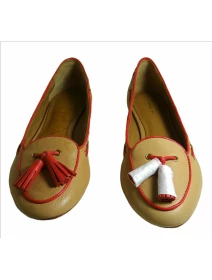 Made of Leather; Hand made Classic moccasin in Soft tumbled leather with Contrast leather trim; Bow detailed in front and Coach logo on back; Gold hardware; Soft leather lining; Leather and Rubber sole with logo Coach; There luxuriously flats run very true size.