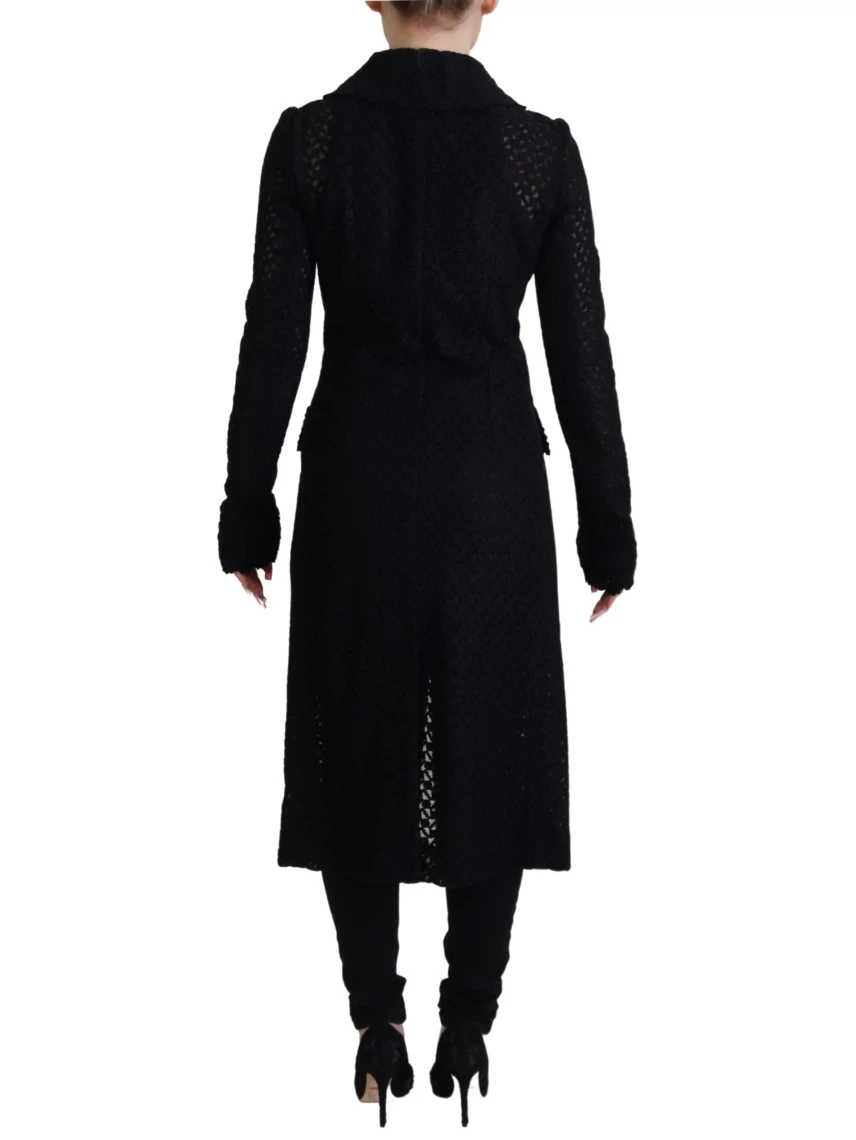 Immerse yourself in the epitome of elegance with this Gorgeous brand new, 100% Authentic Dolce & Gabbana knitted long jacket. Perfect for discerning fashion aficionados, this black button-down piece embodies regular fitting for a comfortable yet flattering silhouette. A full button front closure pairs with subtle logo details, all finely crafted in Italy to ensure you the most exclusive and high-end craftsmanship available. Color: Black Material: 32% Cotton, 28% Polyester, 20% Viscose, 11% Acrylic, 5% Nylon, 4% Wool Lining: 54% Cotton, 23% Nylon, 19% Elastane, 4% Acetate Country of origin: IT