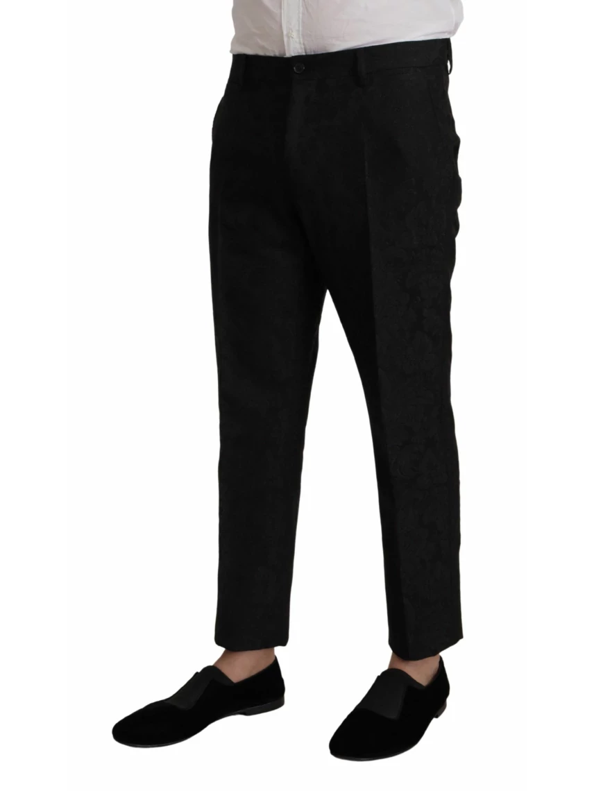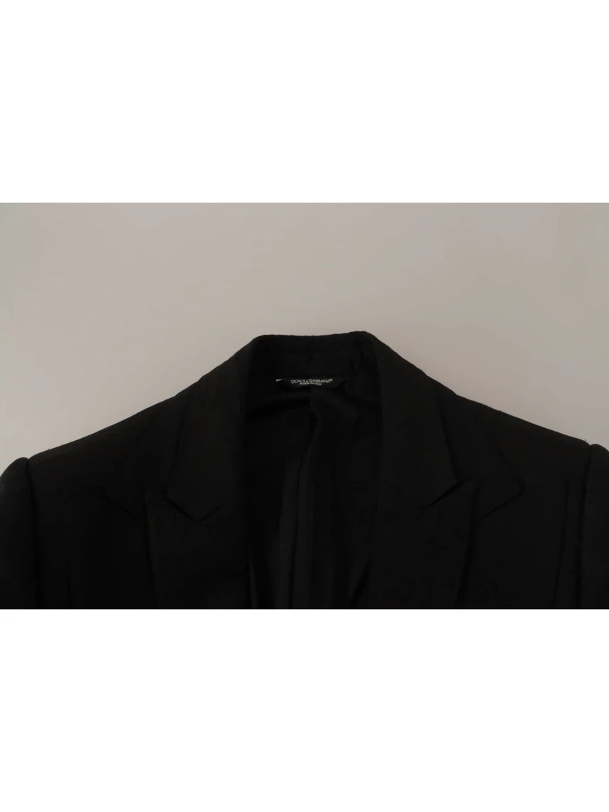 Step into a world of sophistication with this stunning, authentic two-piece Dolce & Gabbana Martini suit. Immaculately designed for those who appreciate the finer things in life, this suit is ideal for making an unforgettable impression at any formal event or business meeting. The blazer features a refined notch lapel, neatly tailored long sleeves, a convenient chest pocket, and stylish side flap pockets, all accentuated with button cuffs for an extra touch of elegance. The trousers complement the jacket with a comfortable mid-rise cut, providing a perfect fit with a button and zip fly, belt loops, and tailored side and back pockets. Color: Black Material: 40% Polyester, 38% Acetate, 20% Nylon, 2% Elastane Lining: 75% Silk, 20% Rayon, 5% Elastane Closure: One button closure Fitting: Slim fit 3-way pants zipper closure Logo details Made in Italy High craftsmanship and exclusivity
