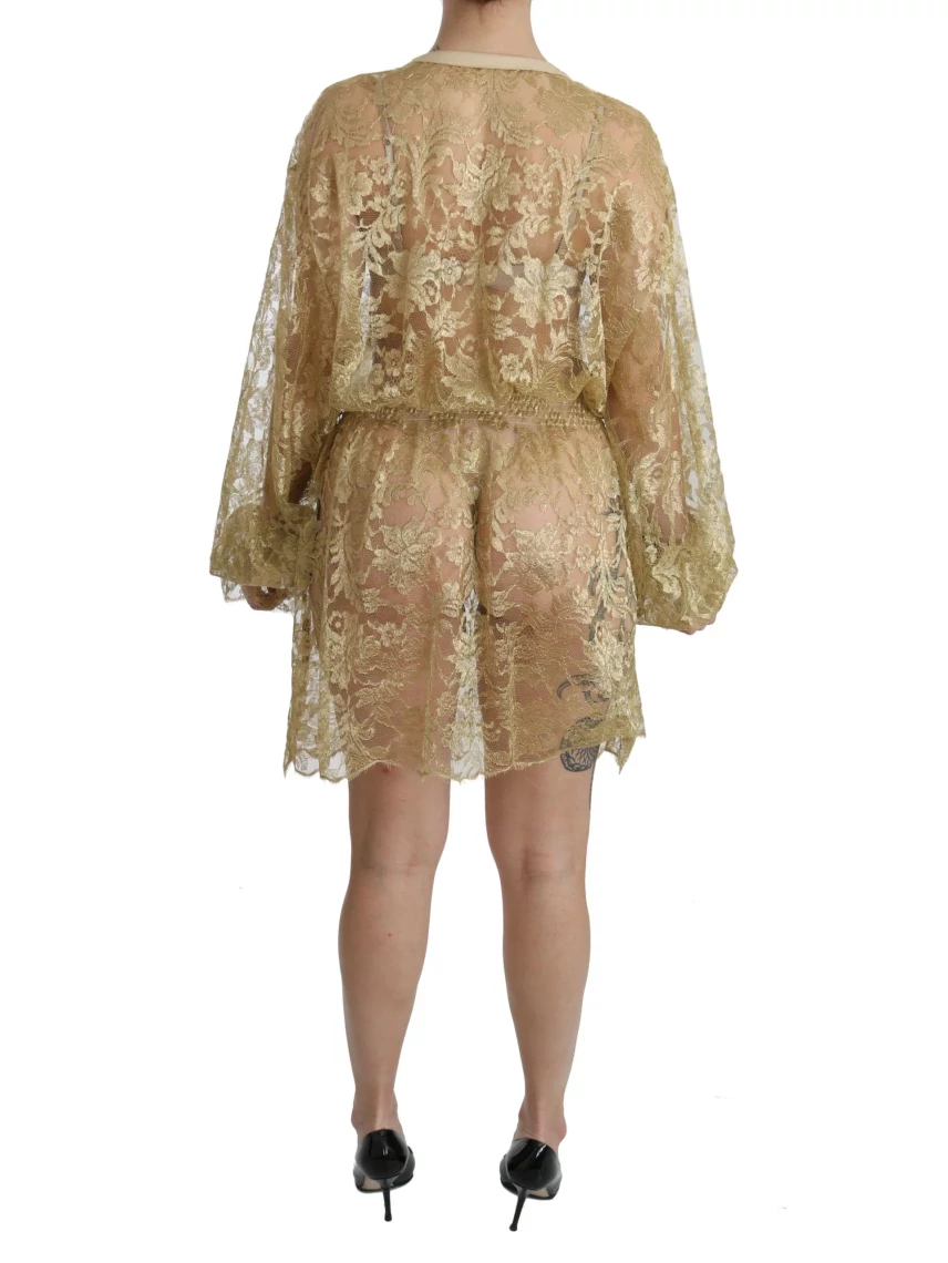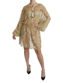 Indulge in the luxury of this stunning A-Line Knee Length Dress by Dolce & Gabbana. Perfect for special occasions, this dress features a gold lace see-through design that exudes sophistication and glamour. Crafted from a delicate blend of cotton, nylon, and silk, this dress provides both comfort and a touch of elegance. With its signature logo details and expert Italian craftsmanship, this piece is a testament to Dolce & Gabbana’s dedication to high-quality, exclusive fashion. Button closure ensures a seamless fit, allowing you to move with grace and confidence. Color: Gold Material: 75% Cotton 20% Nylon 5% Silk Country of Origin: IT Logo Details Made in Italy High Craftsmanship