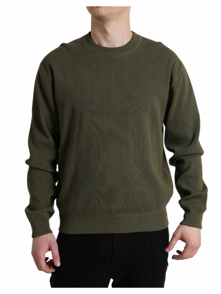 Step into style with this luxurious Dolce & Gabbana crew neck sweater. Crafted from the finest 100% cotton, this pullover is not only stylish but also comfortable, making it perfect for any occasion. The rich green hue is versatile and gives a touch of elegance to your wardrobe. With meticulous attention to detail and iconic logo embellishments, this made-in-Italy masterpiece is a must-have for those who appreciate high fashion and timeless design. Material: 100% Cotton Color: Green Country of Origin: IT