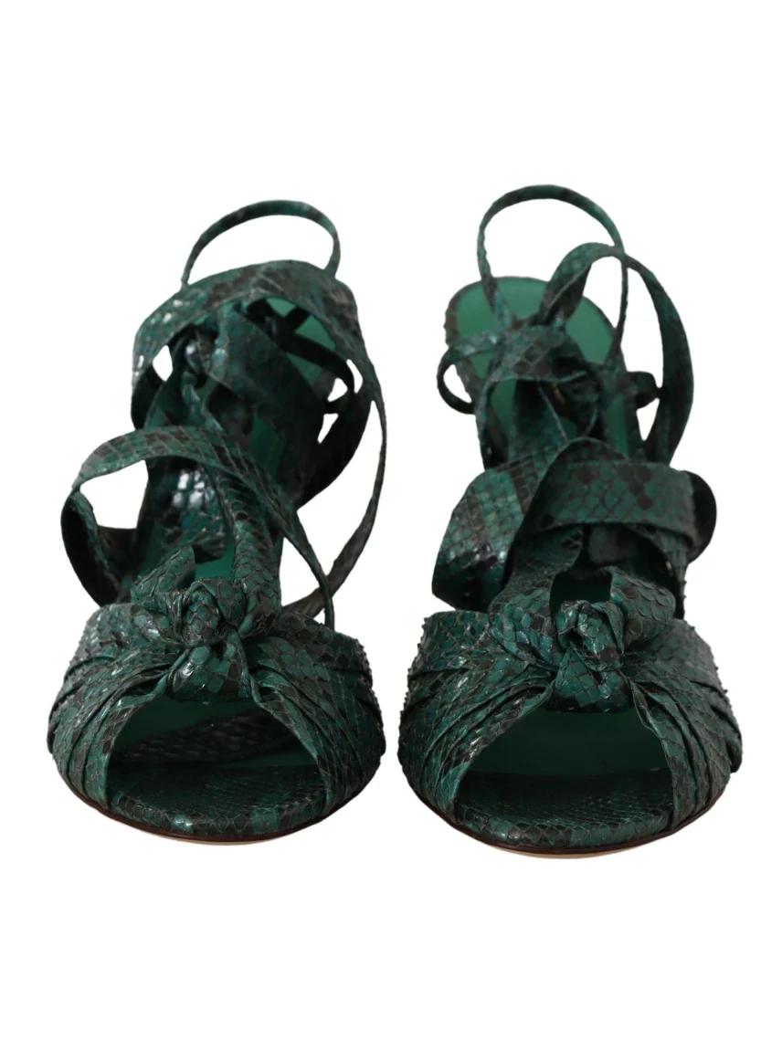Indulge in the epitome of luxury with these exquisite strappy sandals by Dolce & Gabbana. These heels are a testament to high Italian craftsmanship, made with premium exotic leather python that’s sure to turn heads. The stunning green and beige hues offer a vibrant yet sophisticated appeal, perfect for exclusive events or a glamorous night out. Complete with the brand’s iconic logo details, these sandals are a timeless addition to your collection. Material: 100% Exotic leather python Color: Green and beige Country of origin: IT Leather bottom sole Logo details Made in Italy