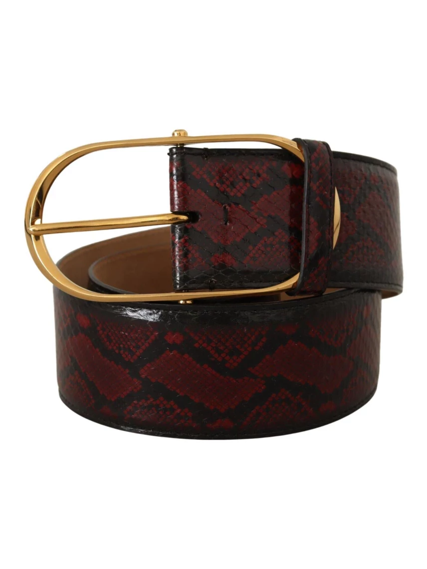 Step up your style game with this stunning, 100% Authentic Dolce & Gabbana belt. This exquisite accessory features a striking red Python snake skin paired with luxurious leather, accented by a chic gold oval buckle. It not only cinches your waist but also adds a touch of sophistication to any ensemble. Perfect for the fashion-forward woman looking to make a statement. Crafted in Italy with meticulous attention to detail, this belt is a masterpiece of design and quality. Material: Python snake, Leather Color: Red Gender: Women Country of origin: IT Width: 5 cm