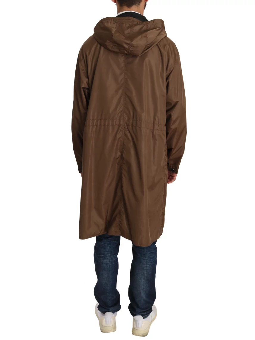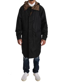 Scopri l'essenza dello stile che incontra la funzionalità con il nostro impermeabile reversibile con cappuccio Dolce & Gabbana. Perfetto per l'uomo moderno che non lascia che gli elementi dettino la sua giornata. Questo lussuoso cappotto è una fantastica aggiunta al tuo guardaroba con il suo elegante design reversibile nero e marrone, che garantisce versatilità e stile per ogni occasione. Modello: Impermeabile reversibile con cappuccio Colore: Nero Design bifacciale con chiusura a bottoni e cerniera Tasche funzionali: quattro sul lato nero, due sul lato marrone Raffinati dettagli con logo per un tocco di prestigio del marchio Comfort ottimale con una silhouette dalla vestibilità perfetta Realizzato con orgoglio in Italia Materiale: 100% nylon Fodera: 100% nylon Paese di origine: IT