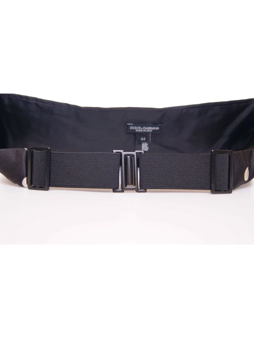 Indulge in the epitome of elegance with our newest entry direct from Dolce & Gabbana’s MainLine BlackLabel Collection – a luxurious silk cummerbund that flawlessly blends classic style with impeccable craftsmanship. A perfect accessory for those special gala nights or upscale weddings, this cummerbund is the ultimate expression of sophisticated fashion. With its adjustable hook clip closure and stretch band, you’ll find both comfort and versatility in its design. Material: 100% Silk Color: Black with white polka dots Width: 13cm Logo details Made in Italy