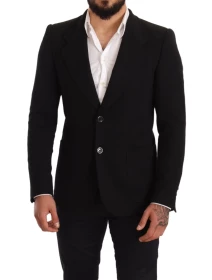 Migliora il tuo stile con questo splendido blazer Dolce & Gabbana 100% autentico, perfetto per qualsiasi occasione formale. Eleganza e alta artigianalità caratterizzano questa giacca, che sfoggia un rever a lancia elegante, abbinato a un elegante modello monopetto a due bottoni, pensato per una vestibilità slim che valorizza la silhouette. Questo lussuoso capo è disponibile nel classico nero, pronto a impreziosire il tuo look. Materiale: 100% cotone Fodera: 100% seta Colore: nero Paese di origine: Italia Dettagli logo Con tre tasche esterne e tre tasche interne, praticità e stile si fondono in un mix perfetto, tipico di Dolce & Gabbana. Prodotto in Italia, questo blazer non è solo un capo di tendenza, ma una testimonianza di squisita artigianalità.