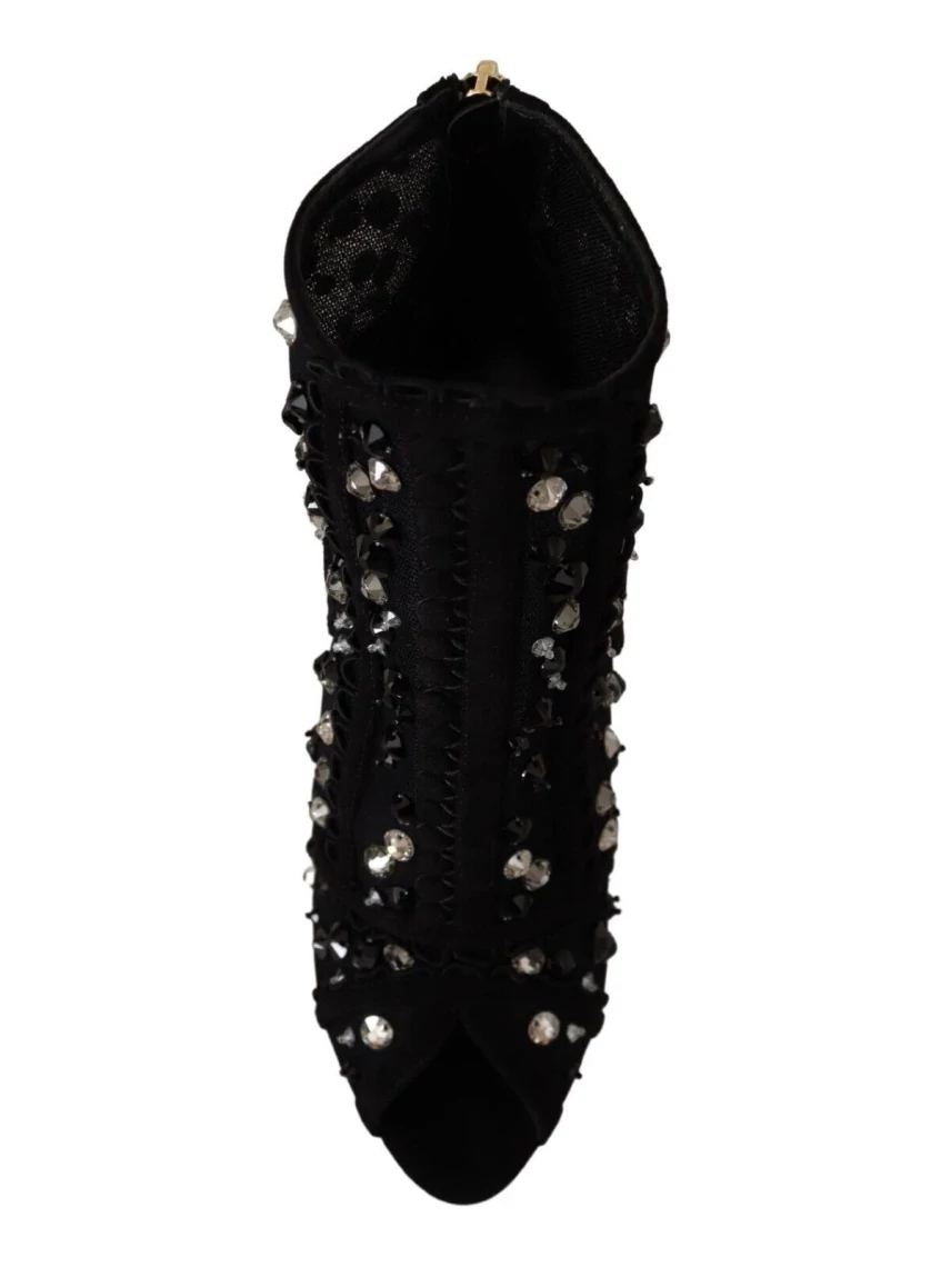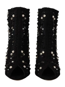 Step into luxury with these exquisite Dolce & Gabbana short boots, crafted to perfection with sparkling crystal embellishment. Meticulously designed for the fashion-conscious individual, they exude sophistication and high-end quality, essential for any elegant wardrobe. Constructed with a blend of durable nylon and supple leather, along with touches of viscose and polyester, these boots promise both unparalleled comfort and style. Proudly made in Italy, they feature the esteemed brand’s signature logo detailing. Elevate your shoe collection with this black, versatile pair that complements any ensemble. Color: Black Material: 79% Nylon, 15% Leather, 5% Viscose, 1% Polyester Sole: Leather Country of origin: IT