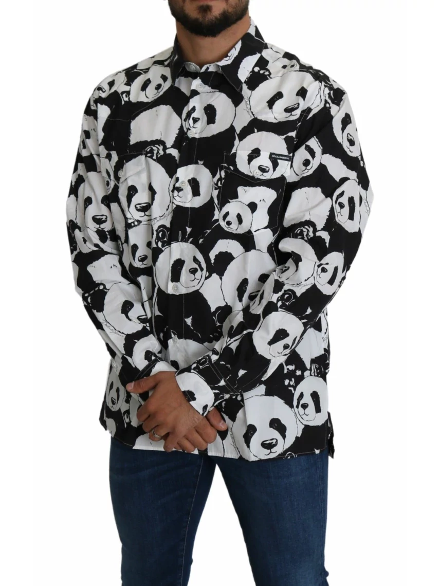 Indulge in the luxurious charm of a Dolce & Gabbana Panda Print Shirt. Crafted with exquisite attention to detail, this 100% Authentic garment boasts a playful black and white Panda print on soft, lightweight cotton. Designed for both comfort and style, the shirt features a buttoned front, long sleeves with buttoned cuffs, a classic neckline, and practical double chest pockets. This Italian-made piece is a celebration of individuality and sophistication, making it the perfect addition to the modern gentleman’s wardrobe. Material: 100% Cotton Color: Black Panda Fitting: Regular fit Country of origin: IT Full front button closure Logo Details