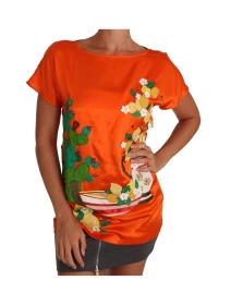 Відчуйте суть італійської розкоші з цією вишуканою шовковою сорочкою Dolce & Gabbana з вишивкою кристалами. Цей топ зі 100% шовку, що сяє яскравими відтінками сицилійського літа, прикрашений заворожливим квітковим мотивом лимона, витончено оздобленим різнокольоровими кристалами. Винятковий виріб, виготовлений в Італії, втілює вишукану майстерність та відданість бренду елегантності. Матеріал: 100% шовк Колір: помаранчевий з різнокольоровою вишивкою Кристали: різнокольорові Країна походження: Італія