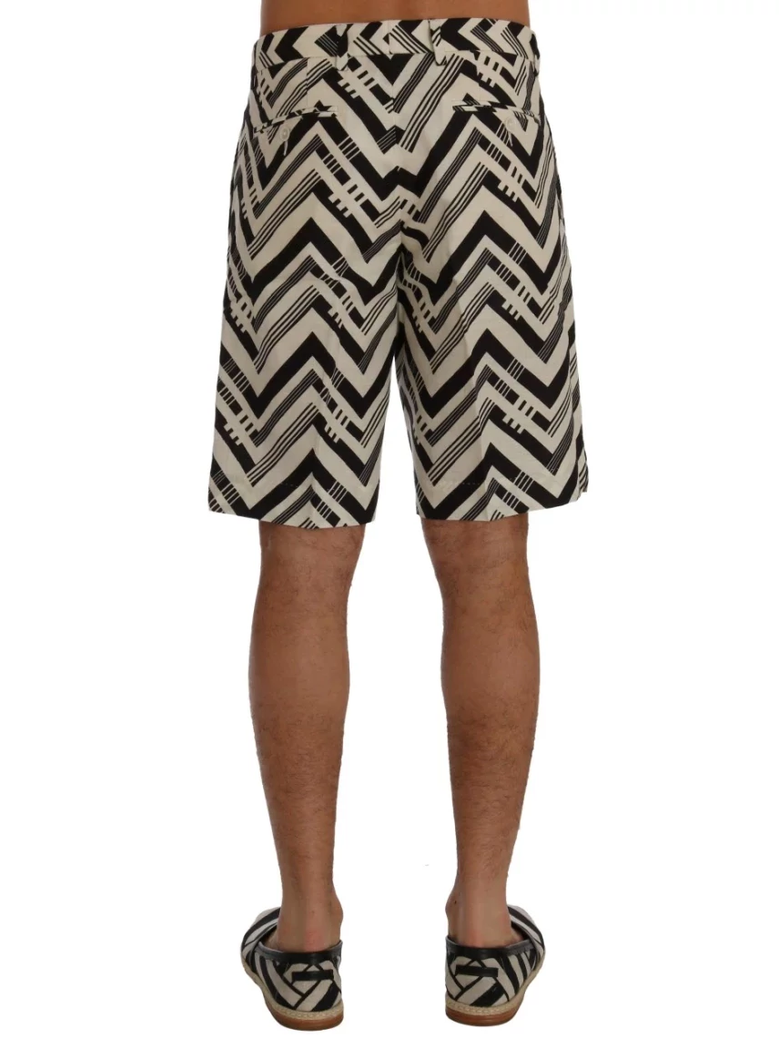 Elevate your warm-weather wardrobe with the sophistication of Dolce & Gabbana. These premium casual shorts, cut to finish just above the knee, offer a timeless striped pattern in classic black and white — perfect for a refined yet relaxed look. Crafted in Italy, they blend effortless comfort with luxury, featuring a generous mix of cotton and linen for breathability on those sunny days. Features: Material: 50% Cotton, 50% Linen Color: Black/White Two front and two back pockets Subtle logo detailing for an exclusive touch Country of origin: IT