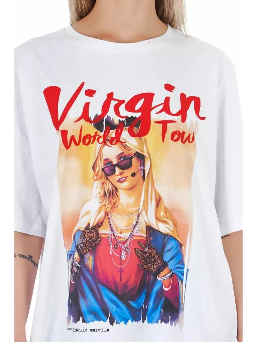 Elevate your wardrobe to effortlessly chic with this Frankie Morello oversized T-shirt. Emblazoned with distinctive front and back prints, it exemplifies bold streetwear sophistication. Crafted in Italy, it merges exceptional quality with audacious style, perfect for fashion-forward individuals. Limited edition and ready to make a statement, this tee is where comfort meets high-fashion edge. Material: Cotton Country of Origin: IT Color: White