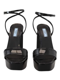 Step into luxury with these stunning Prada block heels platform sandals, brand new and accompanied by tags. These sandals are a symbolization of class, featuring a glossy patent leather design that enhances their black allure. Crafted with exceptional care in Italy, they signal a blend of high fashion and quality craftsmanship. The iconic Prada logo serves as a declaration of style and distinction. These sandals are ready to complement your most sophisticated outfits. Material: 100% Patent Leather Color: Black Country of Origin: Italy Sole: Leather Logo: Prada Details