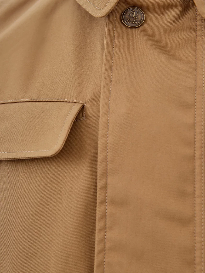 Gorgeous brand new with tags, 100% Authentic Sealup saharan beige cotton jacket with zipped front closure with covered buttons, inner adjustable strap, side pockets Model: Jacket Colour: Beige Fitting: Regular Made in Italy Material: 100% Cotton
