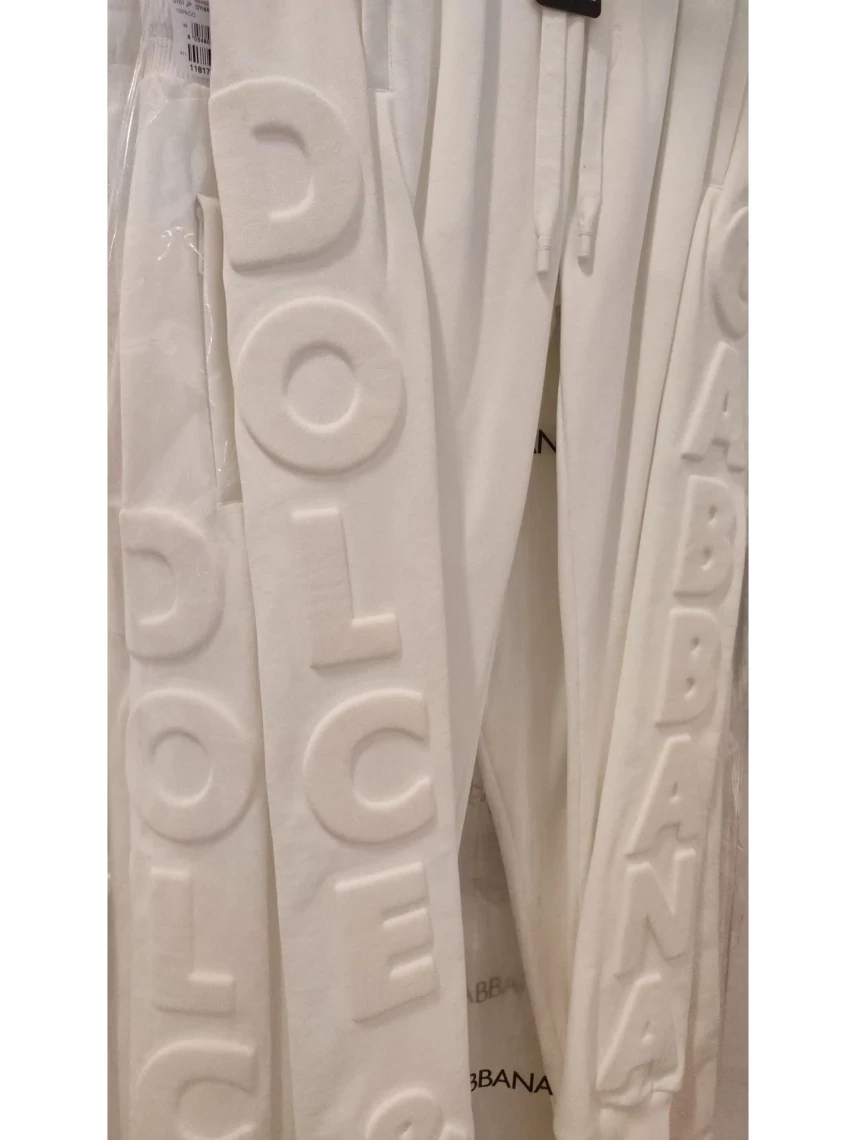 Rozkoszuj się kwintesencją luksusu i stylu dzięki tym zupełnie nowym, absolutnie oszałamiającym spodniom dresowym od Dolce & Gabbana. Idealne dla każdej modnej osoby, charakteryzują się eleganckim, białym kolorem i eleganckimi detalami, takimi jak sznurek w pasie i wygodne kieszenie zapinane na zamek. Spodnie te zdobi kultowe logo marki, a uszyte są z najwyższej jakości włoskiej bawełny, co gwarantuje zarówno wysoką jakość, jak i najwyższy komfort. Materiał: Bawełna Kraj pochodzenia: Włochy Kolor: Biały