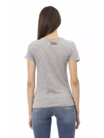 Odśwież swoją garderobę dzięki tej eleganckiej i wyrafinowanej koszulce Trussardi Action. Stworzona dla nowoczesnych trendsetterek, ta koszulka ma klasyczny okrągły dekolt i krótkie rękawy, które łączą wygodę z modą. Subtelny szary odcień zapewnia uniwersalność, a wyrazisty nadruk z przodu dodaje odrobinę drapieżnego charakteru. Idealna na każdą okazję, z łatwością podkreśli Twoje modne poczucie stylu. Kolor: szary Materiał: bawełna, wiskoza Kraj pochodzenia: BD