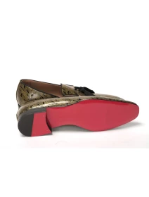 CHRISTIAN LOUBOUTIN Цвет: черный/золотой Стиль товара: официальные плоские лакированные туфли Cl/GG Материал: принтованная кожа/туфли с кисточками (без коробки, в комплекте пыльники)