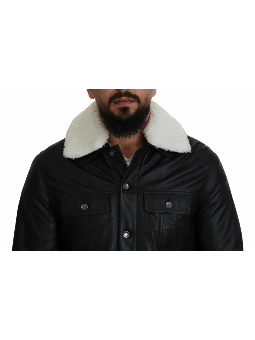 Откройте для себя воплощение стиля в этой элегантной куртке-бомбере. Роскошное дополнение к вашему гардеробу, эта 100% подлинная модель классического черного цвета с белоснежным воротником, гармонично сочетающая универсальность с эффектным контрастом. Изготовленная в Италии, куртка имеет гладкую застежку-молнию спереди, функциональные карманы и культовый логотип, что гарантирует вам элегантность, куда бы вы ни отправились. Подкладка из высококачественной вискозы для максимального комфорта, эта куртка Dolce & Gabbana — свидетельство изысканного мастерства и вневременного дизайна. Цвет: черный. Материал: 100% кожа. Подкладка: 100% вискоза. Страна происхождения: Италия.
