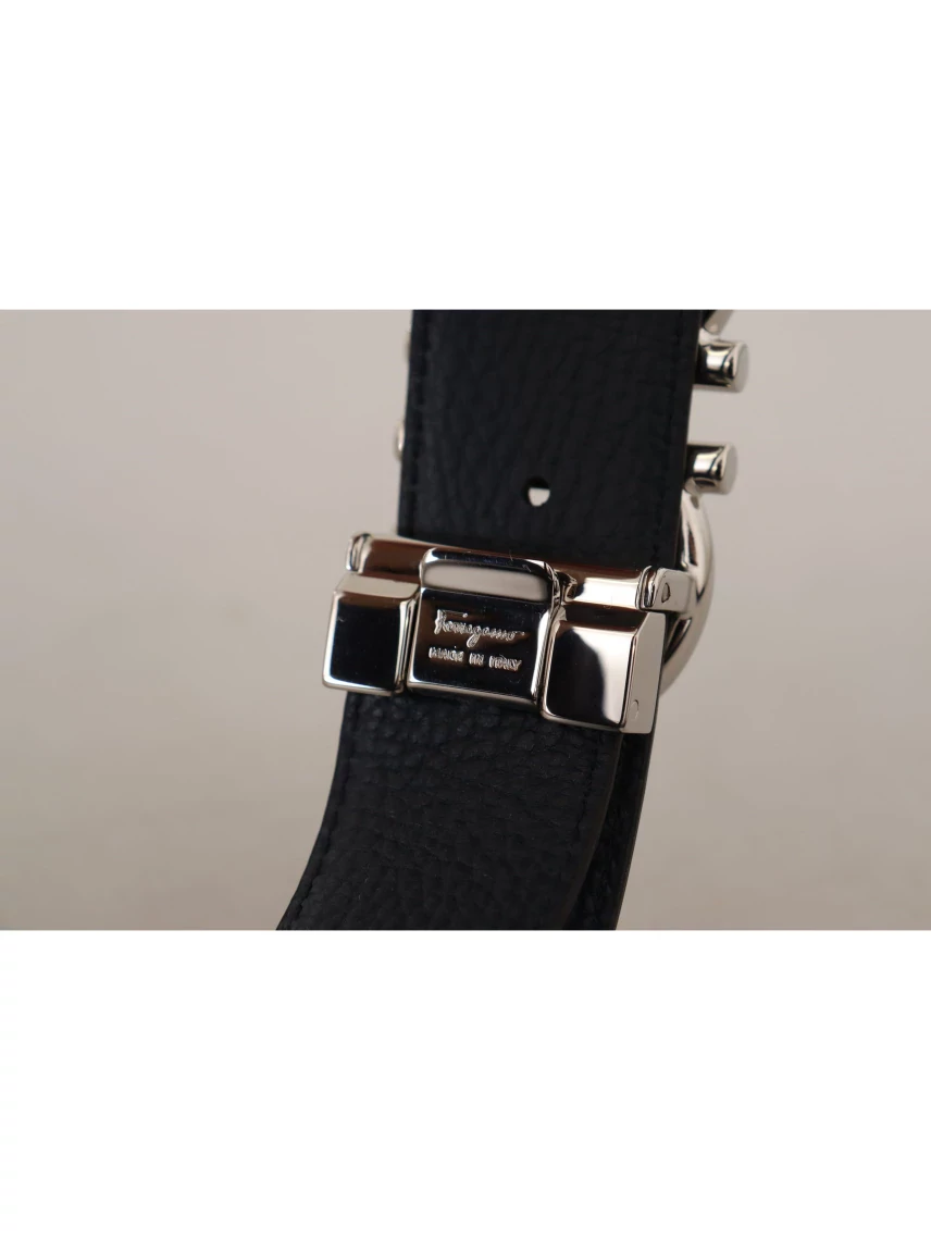 Абсолютно потрясающий, 100% подлинный, абсолютно новый, с бирками, пыльником и коробкой. Двусторонний ремень Salvatore Ferragamo. Модель: 0749924 038. Цвет: морской синий с чёрным. Пряжка: серебристая. Материал: 100% телячья кожа. Логотип. Сделано в Италии.