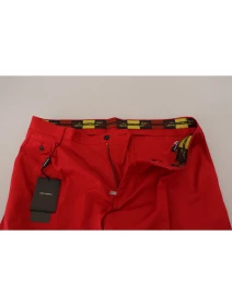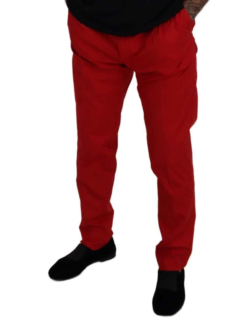 Відкрийте для себе втілення італійської вишуканості з цими яскравими чіносами вузького крою від Dolce & Gabbana. Ідеальне поєднання стилю та комфорту, ці штани стануть акцентом для будь-якого модного гардеробу. Їхній сміливий червоний відтінок універсальний як для повсякденного, так і для вишуканого ансамблю. Колір: Червоний Матеріал: 100% бавовна Країна походження: Італія Крій: Приталений Застібка: Застібка на блискавку Кишені: Дві спереду та дві ззаду Додаткові деталі: Акценти з логотипом