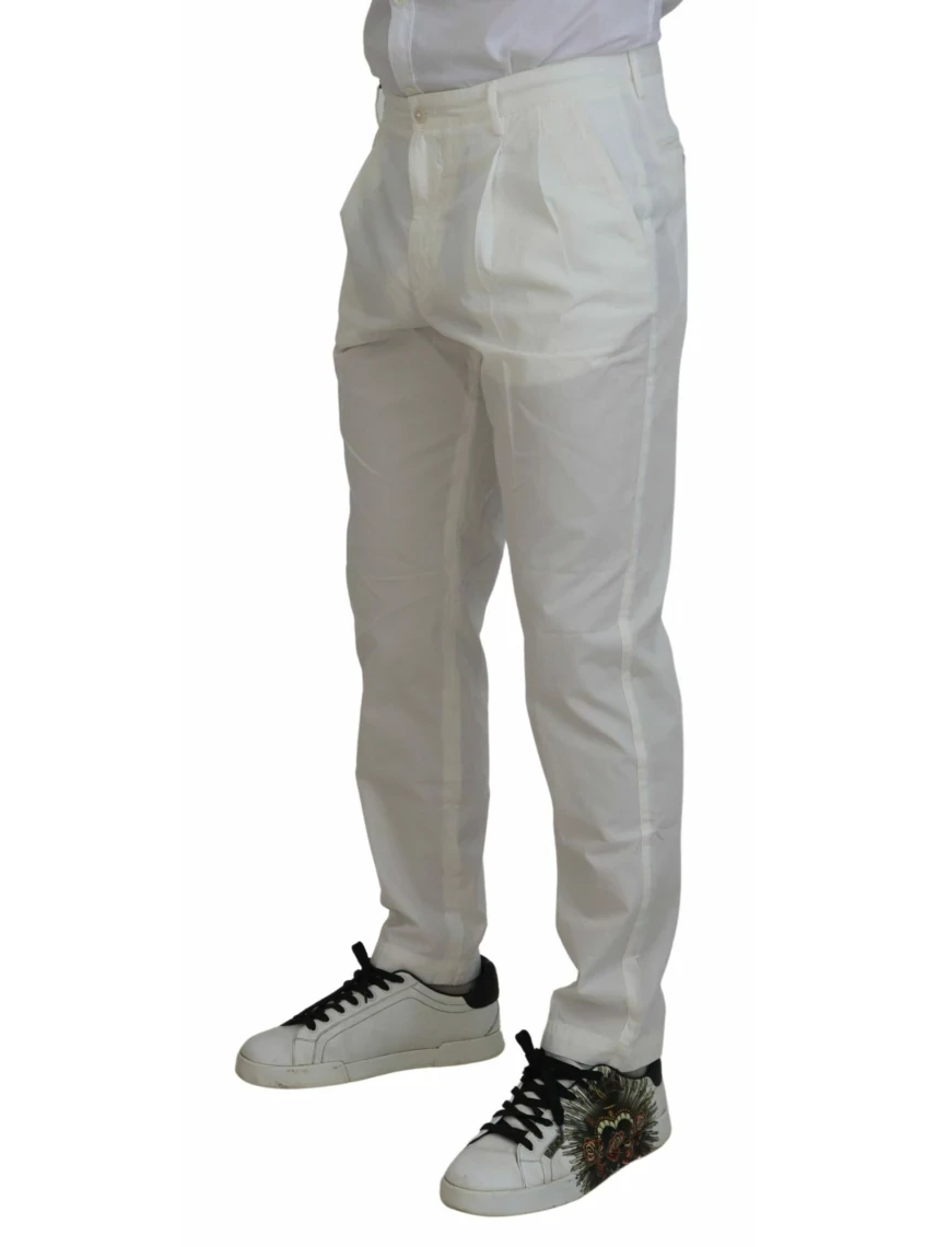 Пориньте у вишуканість із цими бездоганно білими штанами чінос – справжнім втіленням класичного стилю та комфорту. Виготовлені з найкращої 100% бавовни, ці штани – обов’язковий елемент шанованої колекції MainLine від Dolce & Gabbana. Ідеально підходять для доповнення вашого повсякденного гардеробу ноткою італійської елегантності. Колір: білий Матеріал: 100% бавовна Країна походження: Італія Застібка на блискавку та ґудзики Деталі логотипу Зроблено в Італії